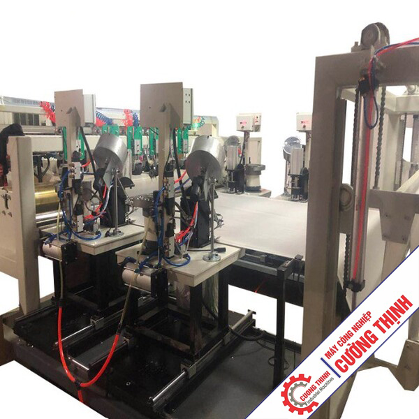 Máy tính tự động điều khiển công việc của máy đóng khoen, Tốc độ của máy khoen đa nhóm để tạo ra khoảng cách các khoen là 90CM và độ chính xác của máy đóng khoen cao hơn so với khóa bằng tay. Máy kéo bạt được tích hợp hệ thống tự động điều chỉnh độ lệch, có thể di chuyển cùng với mặt bạt.
