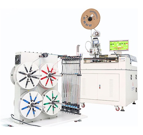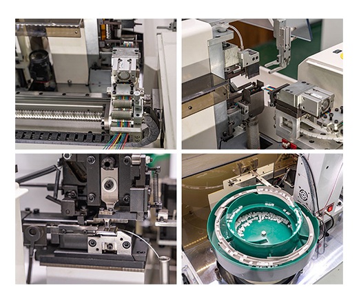 Máy có thể thực hiện các chức năng cắt, tước vỏ, xoắn, nhúng, bấm đầu nối, luồn dây qua vỏ nhựa và tự động đưa dây đầu nối vào vỏ nhựa để xử lý tự động liên tục.